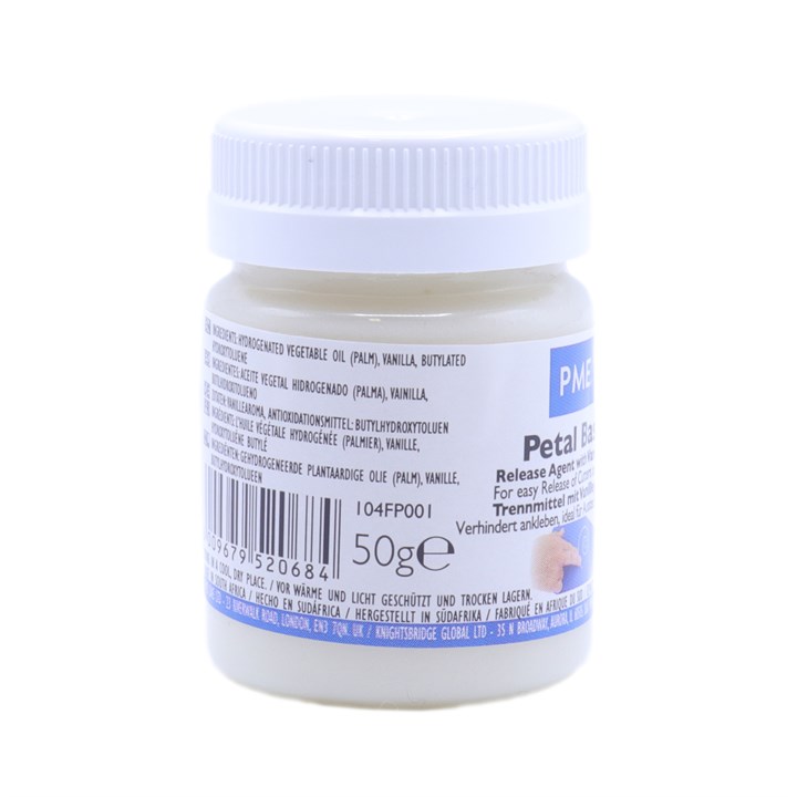 La Base de Pétalos de PME es un desmoldante aromatizado que se utiliza en lugar de grasa vegetal o manteca para engrasar cortadores y mesas de trabajo. Está elaborado a partir de una mezcla de aceites vegetales y tiene un delicioso aroma y sabor a vainilla. Este producto es perfecto para usar con cortadores con detalles complejos. Para obtener mejores resultados, aplica un poco de Base de Pétalo a tu superficie de trabajo antes de extender la pasta de azúcar, de flores o pasta de modelar y aplica una pequeña cantidad en tu cortador antes de usarlo para poder liberar la masa fácilmente y con un corte limpio. Este producto no contiene frutos secos, pero se produce en un espacio donde también se manipula mazapán, por lo que no podemos garantizar que esté libre de restos de frutos secos.