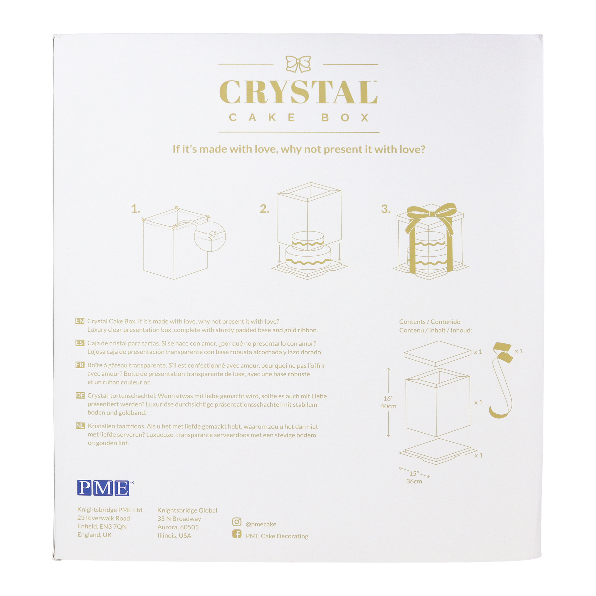 Esta elegante caja de torta de cristales le permite mostrar sus creaciones desde todos los ángulos debido a la carcasa clara. No sólo se verán sus tortas, pero estarán a salvo ya que el material es resistente y duradero, lo que le permite volver a utilizar la caja.