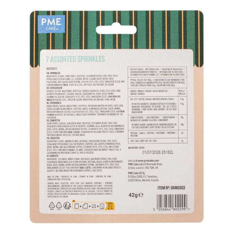 PME Pack de 7 Sprinkles Surtidos – Helados (42g / 1.48oz)