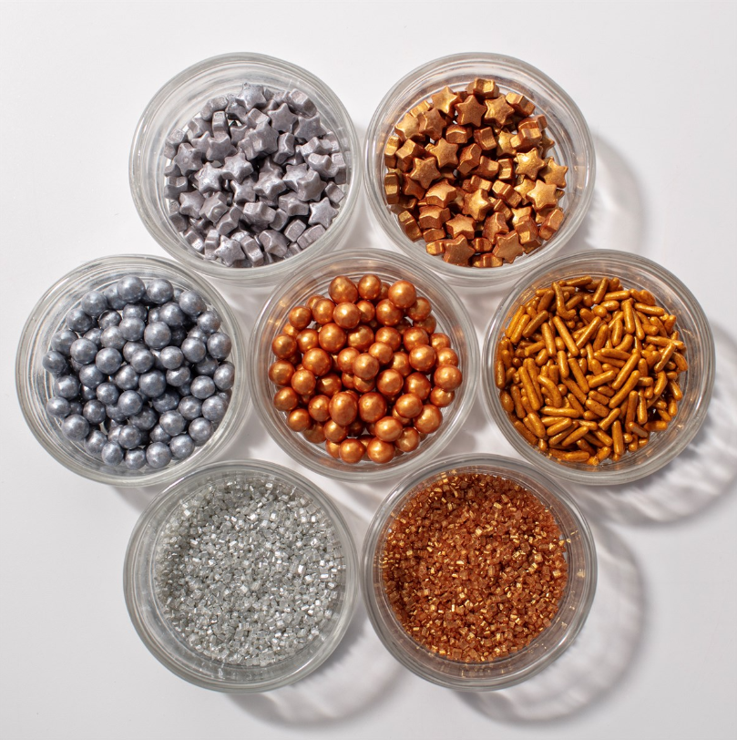 Pack de 7 sobres de sprinkles con temática metálica