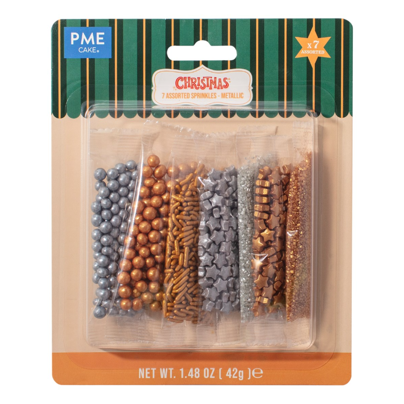 PME Pack de 7 Sprinkles Surtidos – Metálicos (42g / 1.48oz)
