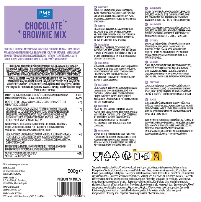 La mezcla para brownies de chocolate de PME ofrece una perfección densa, intensa y llena de chocolate en cada bocado, con un esfuerzo mínimo. ¡Del paquete al éxito, al estilo PME!